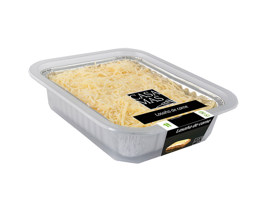 Llet sencera pasteuritzada, pasta alimentària fresca (farina de blat i aigua), tomàquet fregit (tomàquet, concentrat de tomàquet, oli vegetal de gira-sol, midó modificat de blat de moro, sucre, sal i ceba), ceba, carn de porc 7%, formatge emmental ratllat (formatge emmental, llet sencera pasteuritzada, sal, ferments lactis, quall, colorant: betacarotè i antiaglomerant: midó de patata), olis vegetals de gira-sol i de pinyolada d’oliva, aigua, farina de blat, pastanaga, papada de porc 0,7%, pernil i paleta ibèrica 0,3% (conservador: nitrat potàssic), aiguardent de vi, pasta d’all acidulant: àcid làctic i antioxidant: àcid cítric), sucre, sal, pebre negre, orenga, nou moscada, conservadors: sorbat potàssic, àcid sòrbic i benzoat sòdic; espessidor: fosfat de dialmidó hidroxipropilat i estabilitzants: difosfat disòdic i sal polvoritzada.